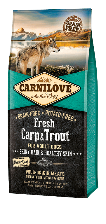 Samenstelling: vers karper, graatvrij (26%), gedroogde forel (18%), verse zalm, graatvrij (14%), gedroogde zalm (12%), pompoen, kikkererwten, erwten, kippenvet (geconserveerd met tocoferolen, 5%), kippenlever (3%), zalmolie (2%), appels, wortels, lijnzaad, gehydrolyseerde schaaldierschalen (een bron van glucosamine, 0,026%), kraakbeenextract (een bron van chondroïtine, 0,016%), bakkersgist (een bron van mannan-oligosachariden, 0,015%), cichoreiwortels (een bron van fructo-oligosachariden, 0,01%), Yucca schidigera (0,01%), algen (0,01%), psyllium (0,01%), tijm (0,01%), rozemarijn (0,01%), oregano (0,01%), cranberry’s (0,0008%), bosbessen (0,0008%), duindoorn (0,0008%), gemberwortel (0,0008%), salie (0,0008%).