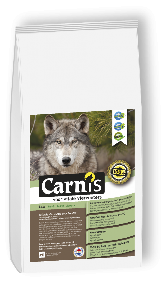 De Lam brok is een volledige en gezonde, hypoallergene, glutenvrije voeding voor een betaalbare prijs, zeer goed verteerbaar en heeft een goede acceptatie, of wel Carnis® voor vitale viervoeters!