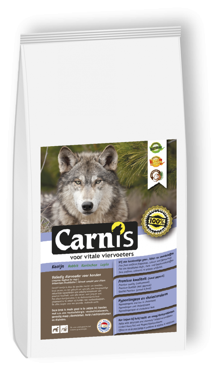 Ingredienten: Konijnenvleesmeel (min. 30%), havermoutmeel, ontsloten sorghum, bietenpulp, oliën en vetten ( o.a. kokosolie), johannesbroodmeel, biergist, vitaminen en mineralen