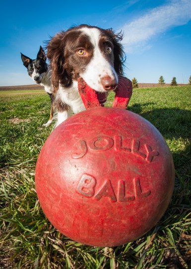 De speelbal voor honden, die zich vanzelf weer opblaast.
