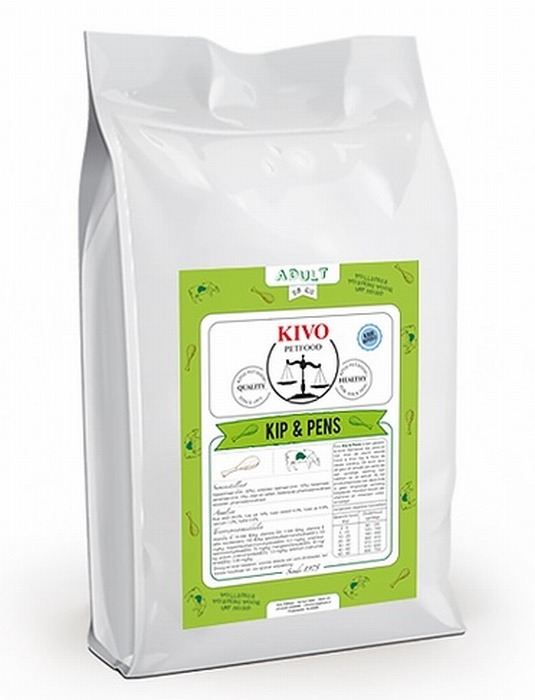 Kivo Kip & Pens is een hoogwaardige geperste voeding die fijn gemalen pens bevat. Kivo Kip & Pens is een geperste brok. Het bevat kip, pens en rijst. Voor de slecht etende hond is Kivo Kip & Pens de ideale voeding. Dit komt door de geur en smaak van pens die een gunstige werking kan hebben op de eetlust. Bij dit productieproces is geen langdurige verhitting en hoge druk toegepast. Hierdoor blijven dus alle aminozuren, vetzuren, vleeseiwitten, oliën, vitaminen en mineralen onbeschadigd en dus perfect beschikbaar voor uw hond.